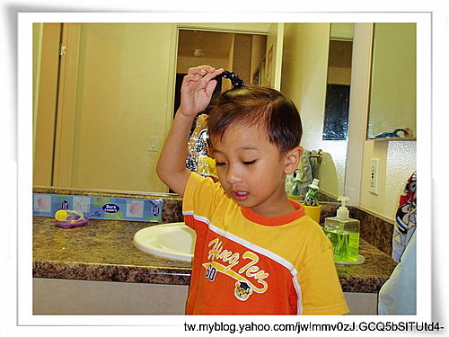 再洗個澡,吹一吹頭。 有小紳士的模樣。