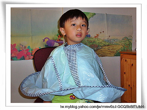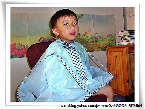 實際上,New寶媽主要的理髮DIY經驗來自於小時後養的長捲毛狗(Happy),次要的經驗來自於New寶媽的妹妹(國中時有髮禁。因著隔天就要檢查,而妹妹來不及去理髮店,所以New寶媽就只好下手了)。