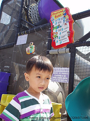 這個大型滑梯由許多管子接成。大人要注意小孩子的動向,稍不注意,就看不到小孩位在何處。