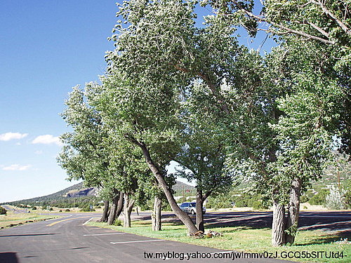 從拉斯維加斯奔向大峽谷的公路中有幾小段是森林,令人眼睛一亮,精神為之一振。