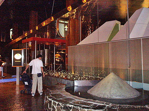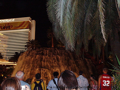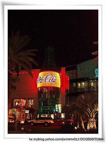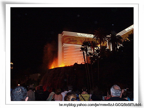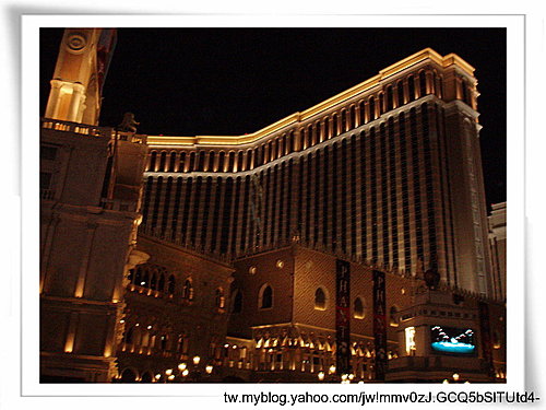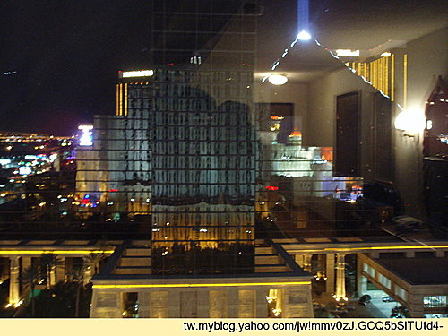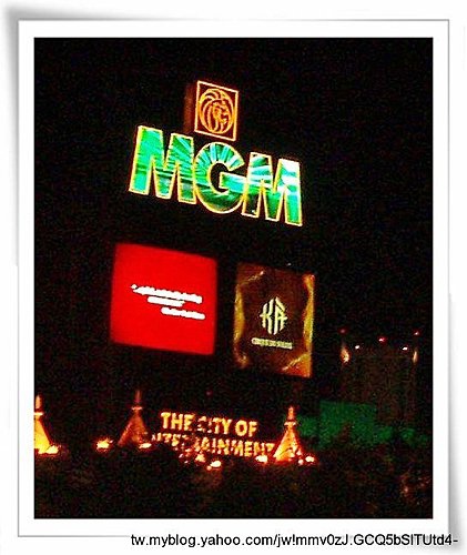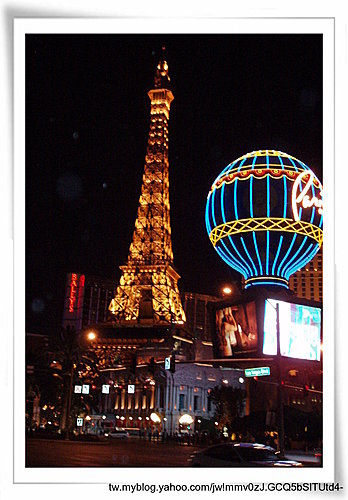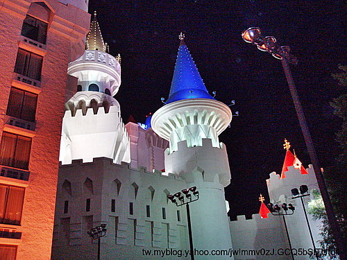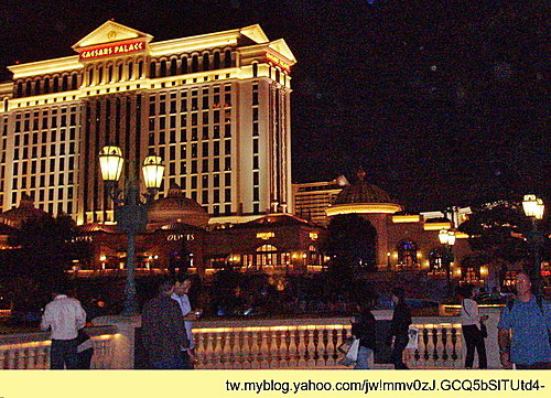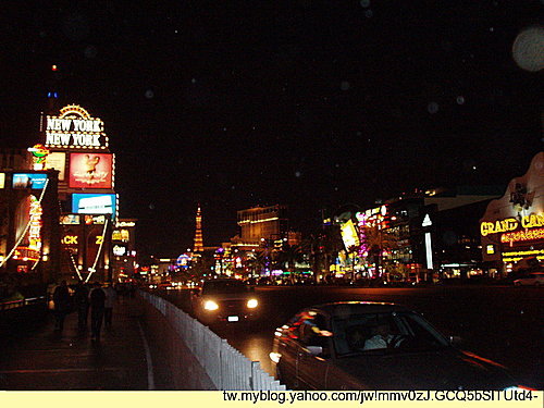 好不容易繞到曼德拉飯店的另一個側門,雖然看到一些人在等公車,但為了節省旅費,還是用兩腿走回神劍飯店吧。隨便吃個晚餐,小憩一會兒,準備出門囉! 在夜晚的拉斯維加斯大街裡,要找停車位是很困難的。神劍飯店的停車場連一個空車位都沒有。New寶爸深怕一旦把車開出去,回來時就沒有任何車位。到時,要找到一個停車位可能會欲哭無淚。於是,我們帶著New寶的戰車(嬰兒推車)再度出征去了,挑戰自己腳力的極限。