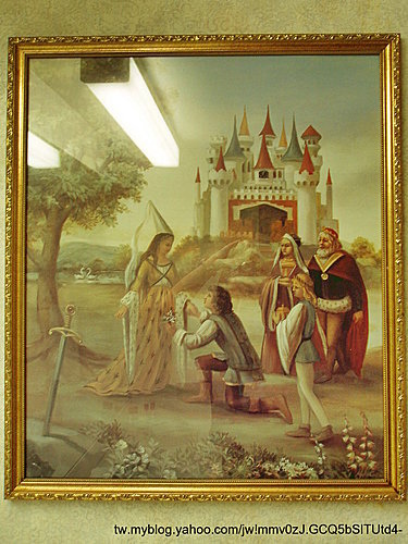 廁所的牆壁上也掛有描繪中古世紀城堡、王子和公主的畫。