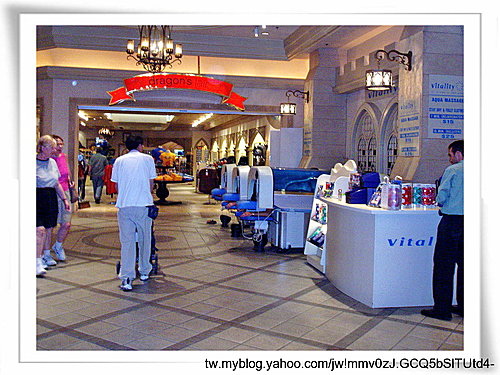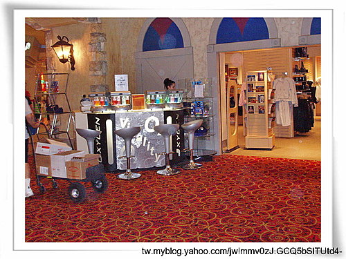 據說這個櫃台上各種顏色的瓶子內裝的是氧氣,主要是提供瘋狂賭客們能量再賭下去。(好讓飯店賺更多的錢?)