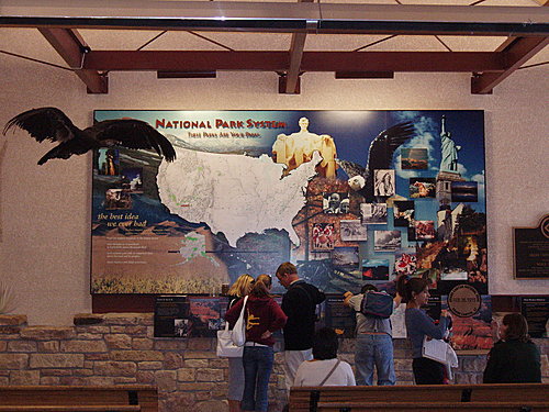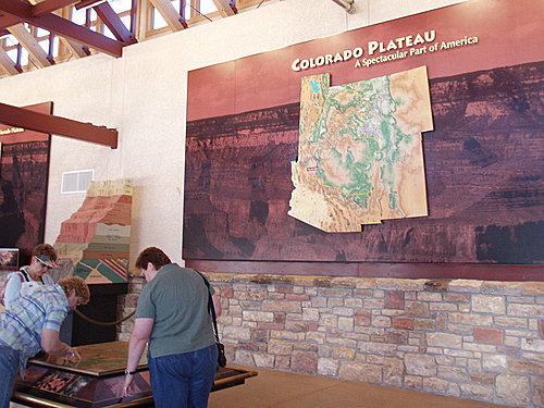 遊客中心的牆上到處有在大峽谷中具有代表性的的動植物浮雕。