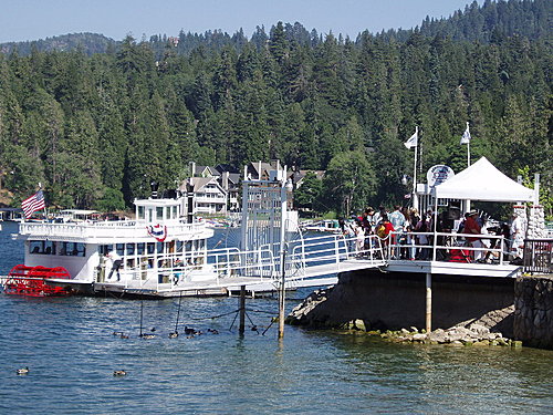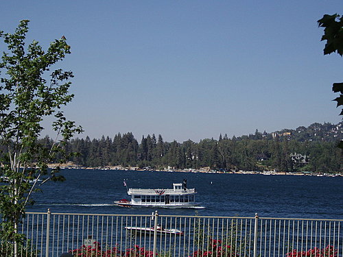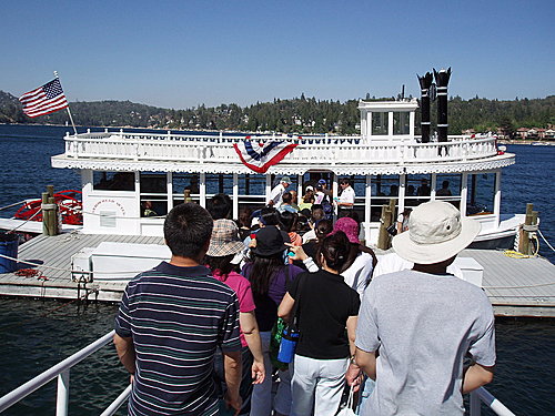 在New寶一家共享一球冰淇淋時,駛過湖面的遊船女王號(Arrowhead Queen) 吸引了我們的目光。