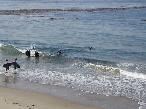 美國人熱愛戶外運動,海邊處處有人衝浪和潛水。