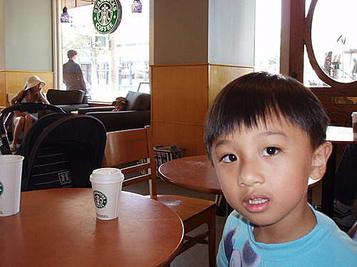 我們一家走得好累,於是到星巴克(Starbucks) 喝點飲料並向店員要廁所的鑰匙上廁所。