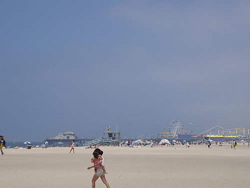 從沙灘可看見遠方的聖塔莫妮卡碼頭(Santa Monica Pier)。