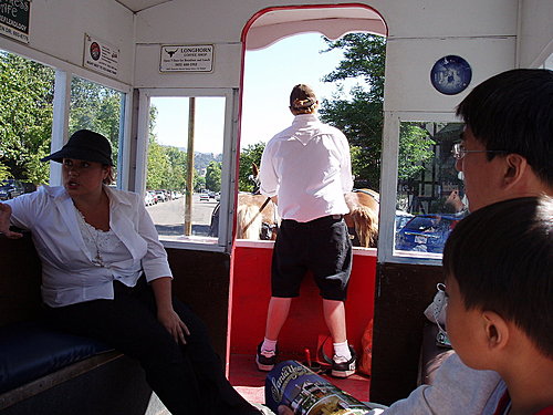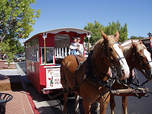 在遊客中心旁是觀光馬車的停靠站。兩大人一小孩約三十多或四十多美元(New寶媽想不起到底是多少錢,因為這是幾個月前的事)。生意較差時,車夫會詢問街上的人要不要坐馬車。不到30分鐘就結束行程,讓人覺得有一點貴。不過好不容易來這裡一趟,加上New寶好想坐馬車,我們就付錢上車了。