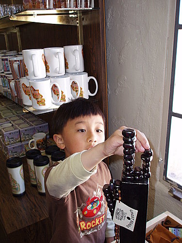 Scotty's castle 旁遊客中心的禮品店。New寶在玩磁石。