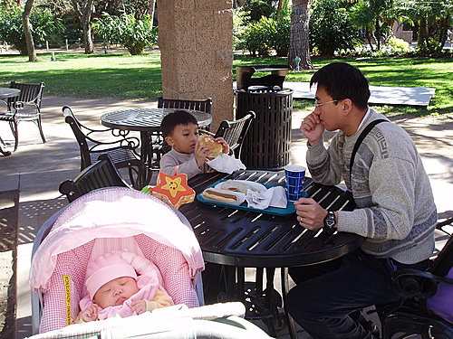 先吃午餐。快兩個月大的J寶睡得很香甜。