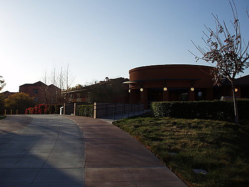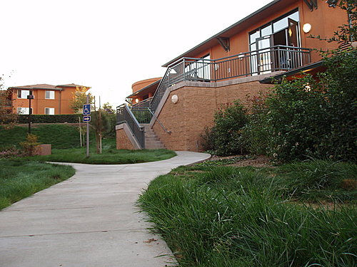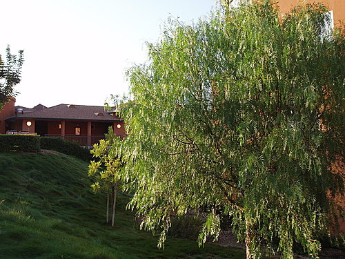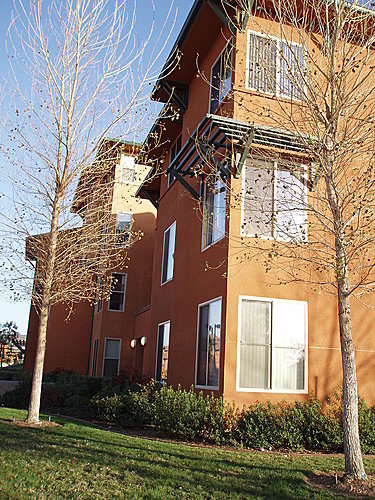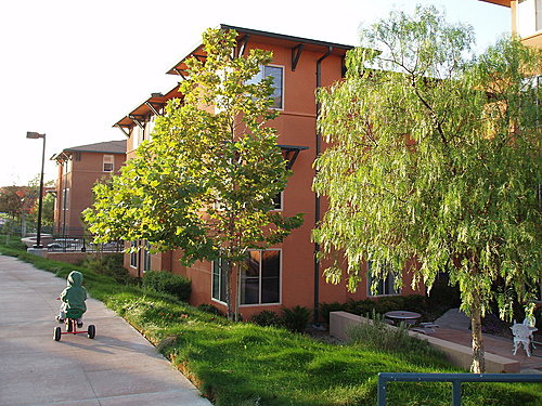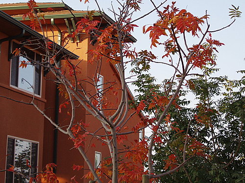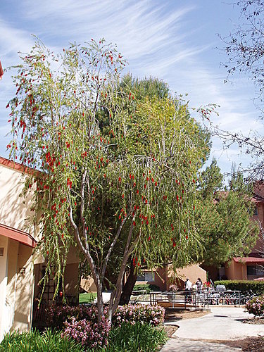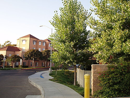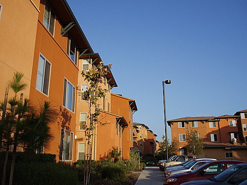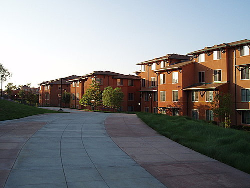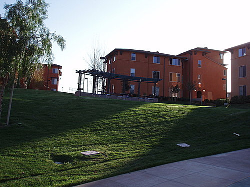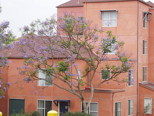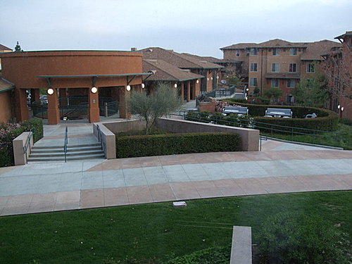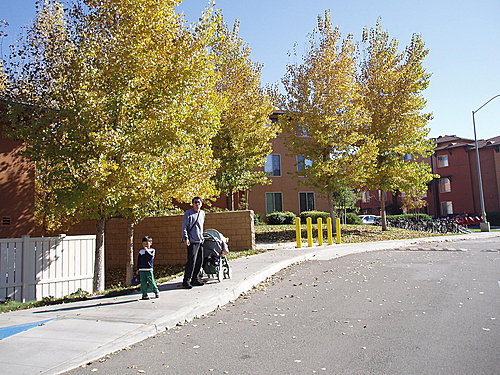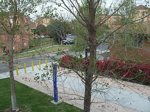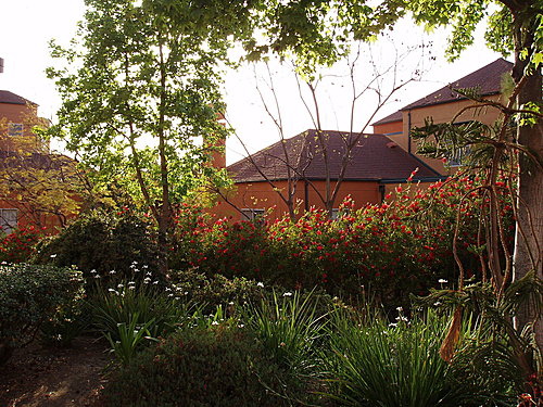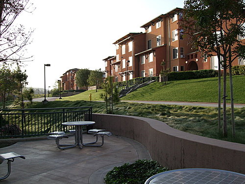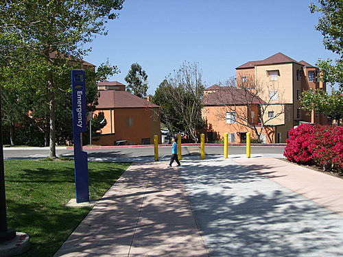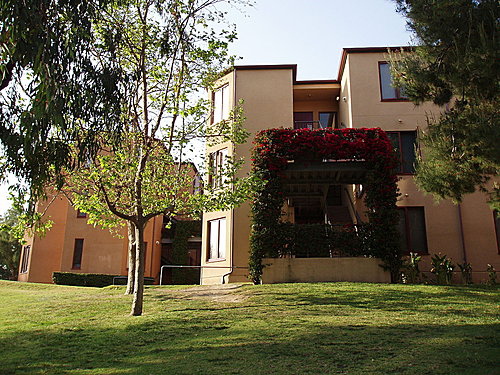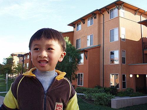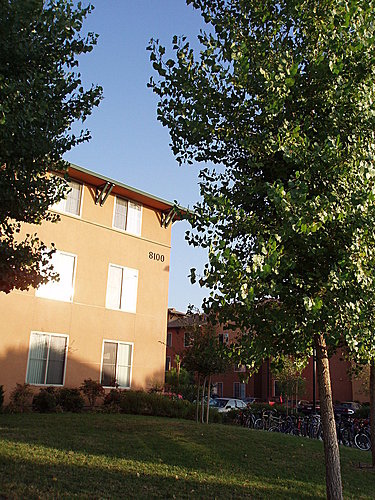 在兩顆金黃色的樹之間的房子二樓,就是NJ一家所住的UCI研究生宿舍(Palo verde)。