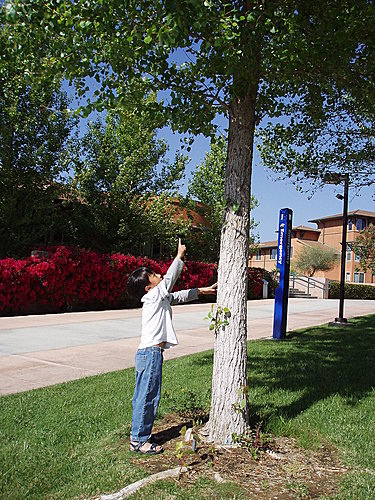 兩棵樹之間的邊間二樓就是NJ一家的家 (8111 Palo Verde Road)。