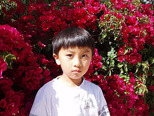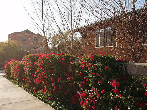 NJ家前方的宿舍辦公室圍牆開滿了豔麗的九重葛。