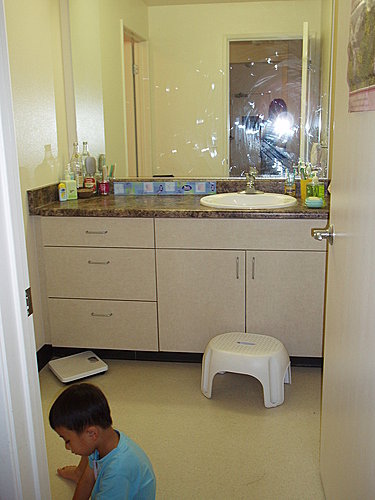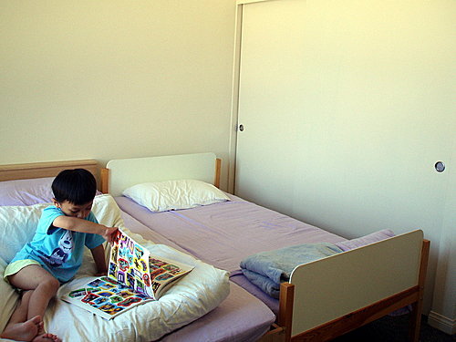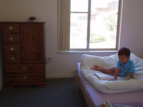 有好幾次New寶不小心把自己房門鎖住,為省錢不想請校警,NJ爸媽研發出以厚紙板彎曲插進凹進門框裡的門縫中往下刷,刷到手痠紙板爛了才刷開門(這招傳授給不少台灣同學)。本來差一點想從一樓爬窗戶,不過這樣可能會被校警抓走。