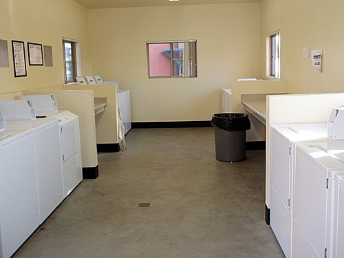 左排是洗衣機,右排是烘衣機,會有工作人員定期打掃消毒。
