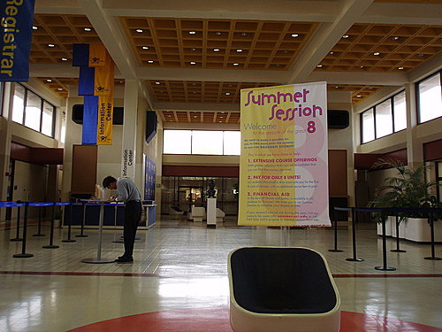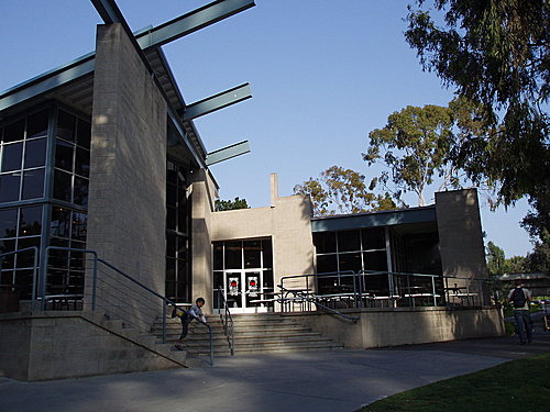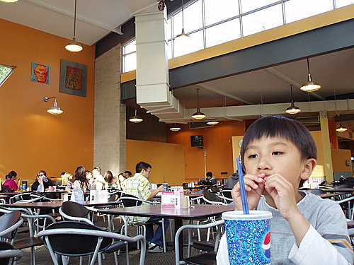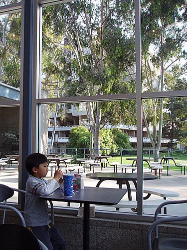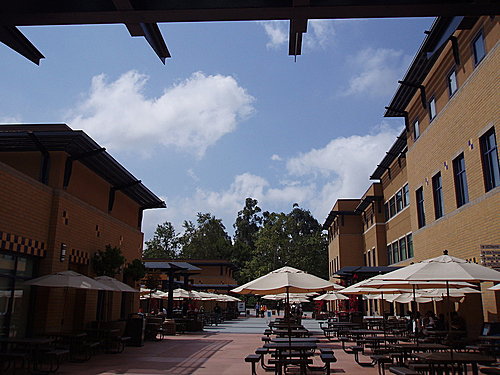這是新落成不久的學生活動中心,外面有許多露天咖啡座。