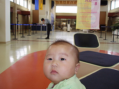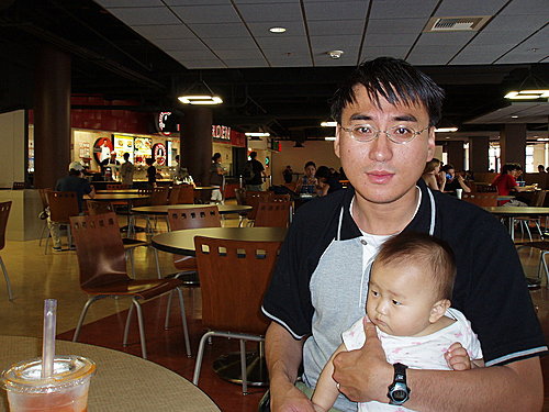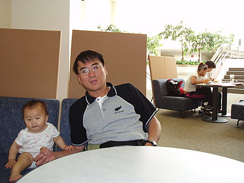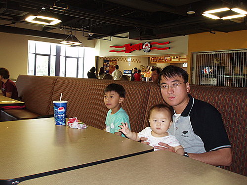 後方的NJ爸在辦事情,J寶正在東張西望。