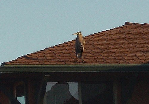 這隻站在宿舍屋頂的蒼鷺(應該是吧!),在風中搜尋獵物。