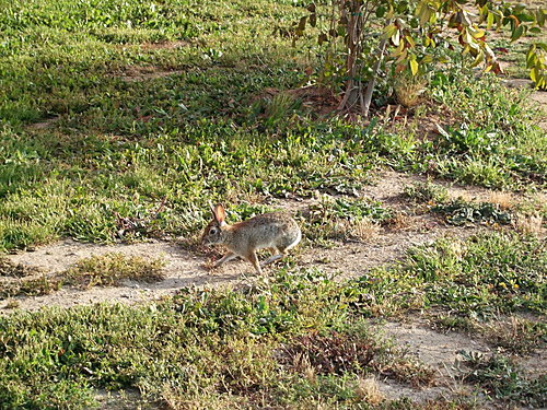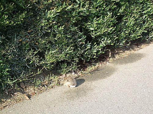 其實,校園中最常見的是烏鴉和兔子。春天時,到處都可以看到非常年幼的兔寶寶。甚至有一天,NJ媽直擊在草地上一隻兔寶寶面向兔媽媽在喝母奶。正準備要拍照時,牠們就逃走了。