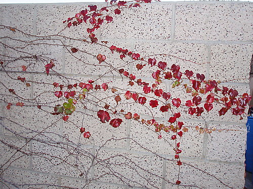 垃圾場的圍牆上滿有詩意的爬牆虎。