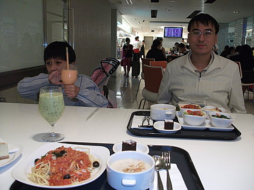 因著飛機誤點,馬來西亞航空公司發給每個旅客補償卷在桃園國際機場的餐廳吃東西。