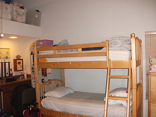 New寶和J寶看到Irvine教會的慧芳阿姨家的上下鋪都開心地不得了。