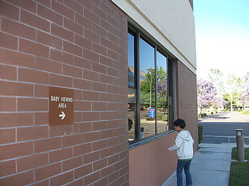 要看嬰兒從這扇窗戶看。(baby viewing area)
