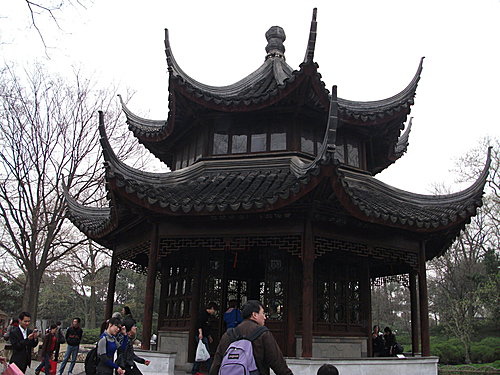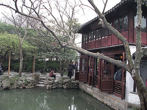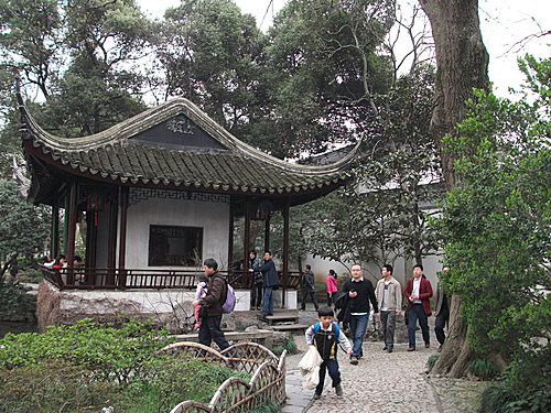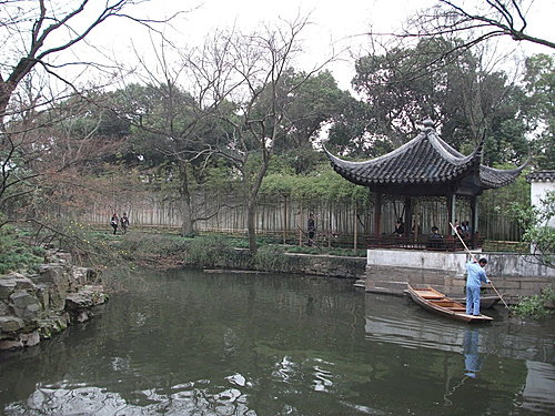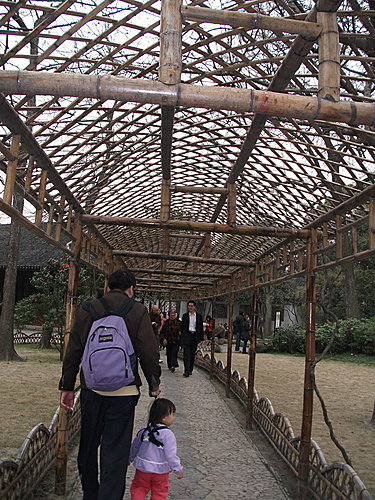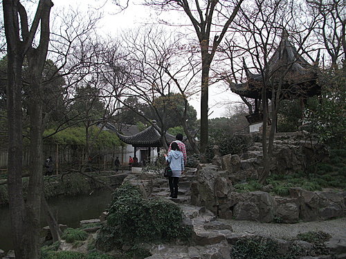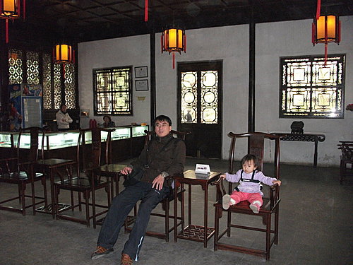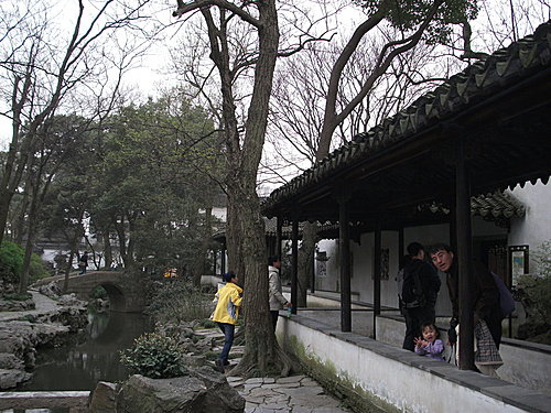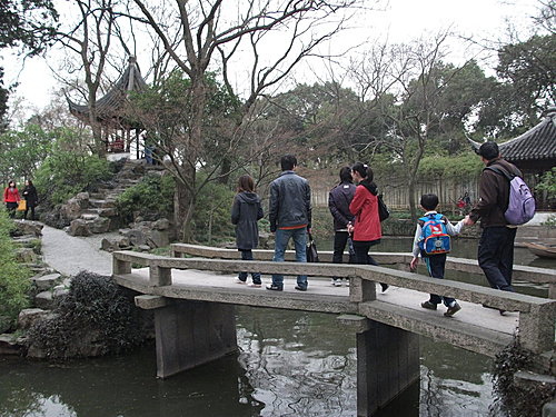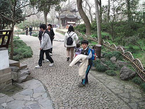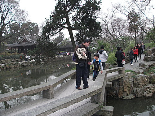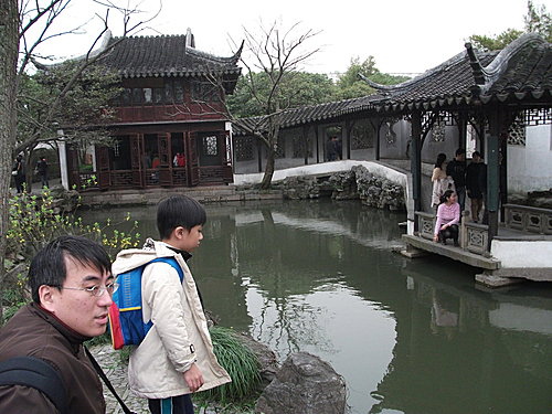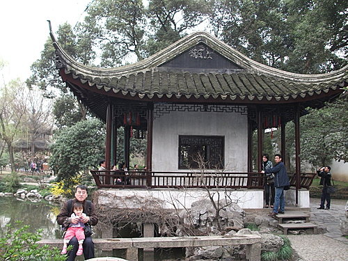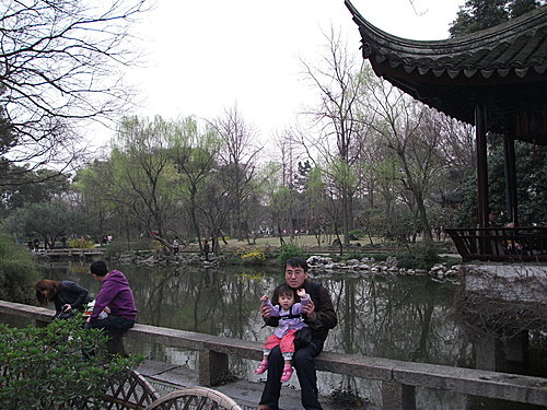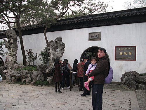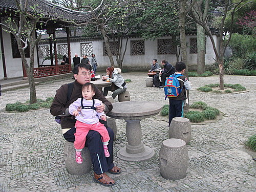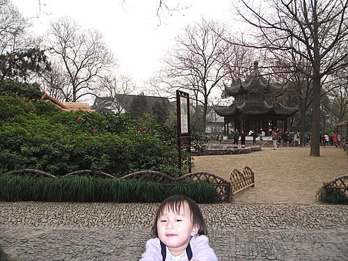 當時NJ一家從蘇州火車站坐計程車抵達拙政園,但離開拙政園時,不僅街上沒有甚麼人,連一輛計程車的影子也沒。又累又餓的NJ爸媽,輪流抱或背睡得很沉的J寶,當時覺得手快斷了,走了約半小時以後,才在靠近大馬路處招到一輛計程車。所以,帶小小孩出門若沒帶推車,就要勤練臂力。