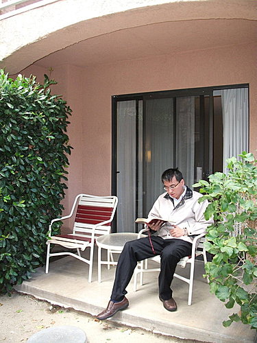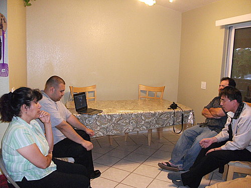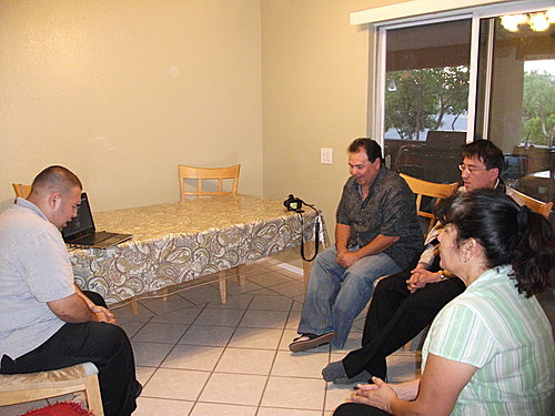 藉著打電話聯絡,NJ一家來到棕櫚泉一個素不相識的家參加禱告聚會。