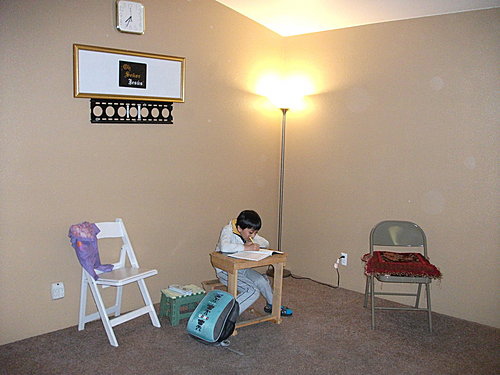 New寶在這個家的客廳角落繼續寫從台灣帶來作業,真乖真認真!