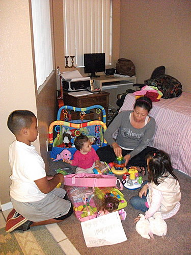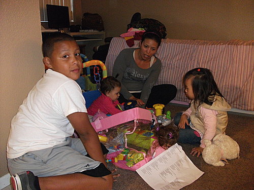 J寶還小,當然沒作業,只要負責和新認識的小朋友以及阿姨一起玩就好了。