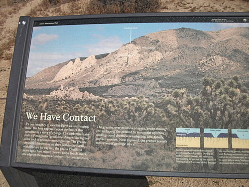 左邊顏色較亮的岩石與右方顏色較亮的岩石本來是分開的,因為地殼的變動,在很久很久以前,於圖中的中心點接合一起。