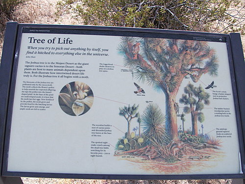 滿有生命的約書亞樹提供許多動物的生活所需,例:松鼠、啄木鳥、老鼠、蛇和許多種鳥類。