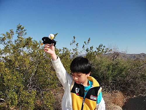 New寶帶著新買的心愛白頭鷹紙偶。