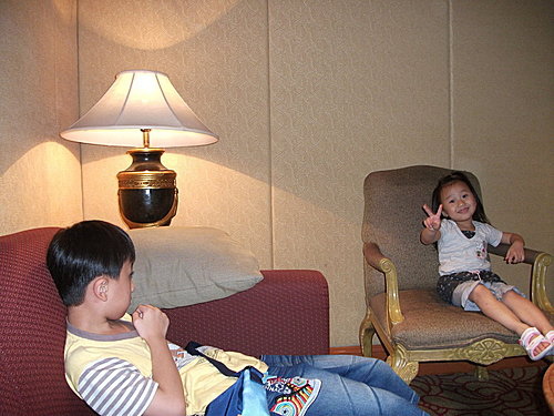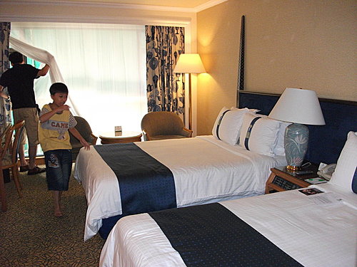 九龍半島的金域假日酒店。爸爸去 check-in。