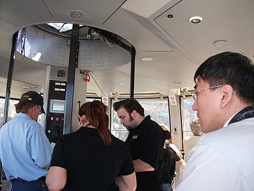 在纜車站時,地面上有一透明窗口可看到機器的運轉。