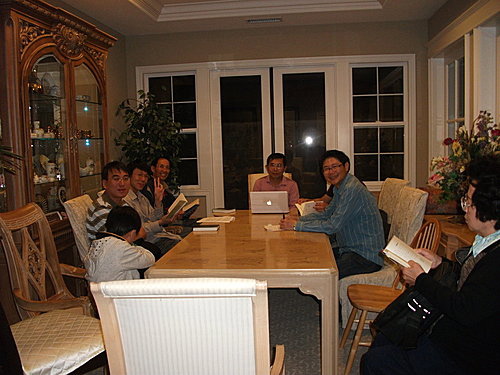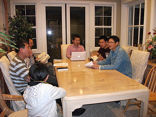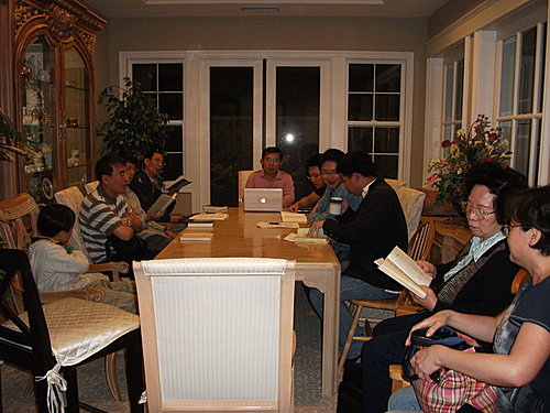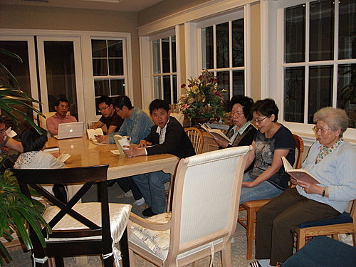 大家一同唱詩歌、讀聖經、分享和禱告。