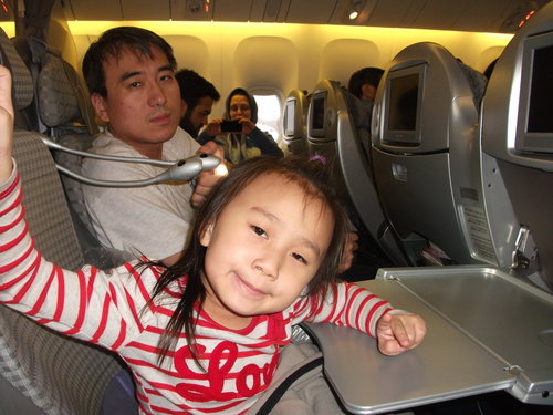 日本航空飛美國線的飛機座位很大,椅子的設計很有未來感。