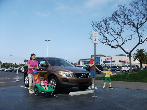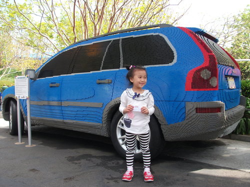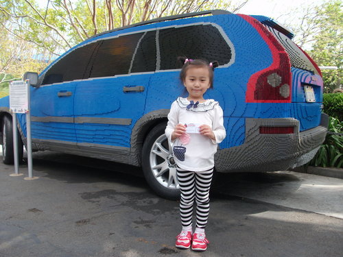這是停車場,這輛車左右兩邊的人和嬰兒推車都是用樂高作的。