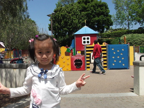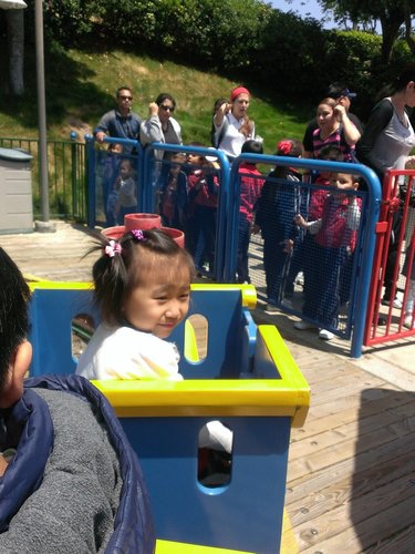 排空中遊艇 (Sky Cruiser)的人非常多,所以在等候區中央有一個孩童的遊戲區,等到快要輪到時,再叫小孩出來。