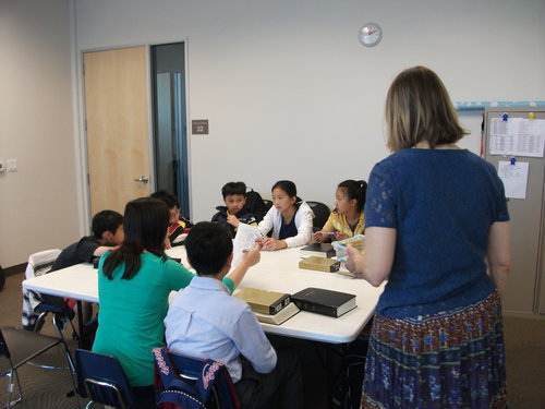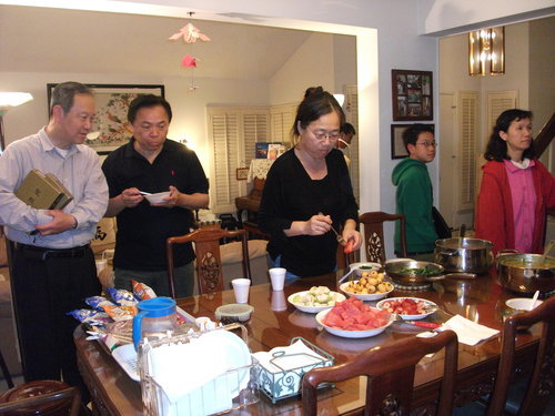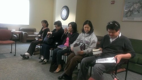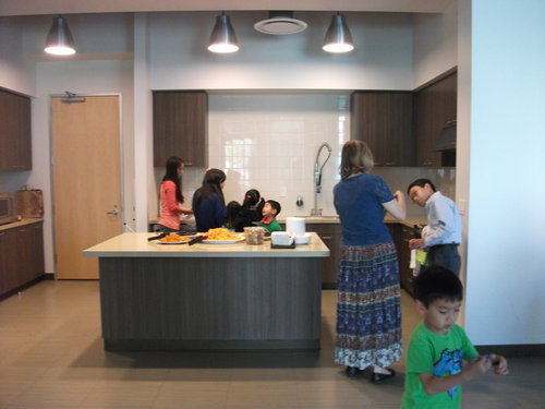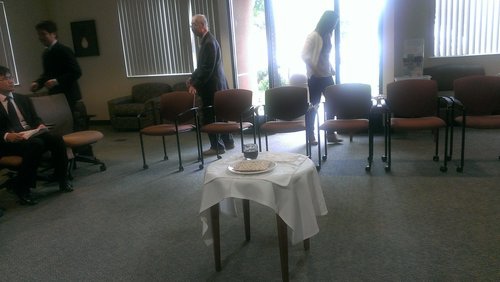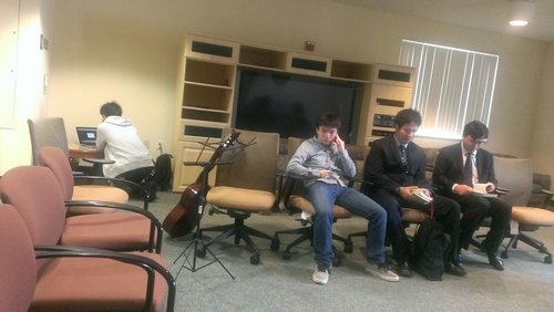 在UCI的Palo Verde宿舍交誼廳的UCI學生主日聚會。現正在預備中。