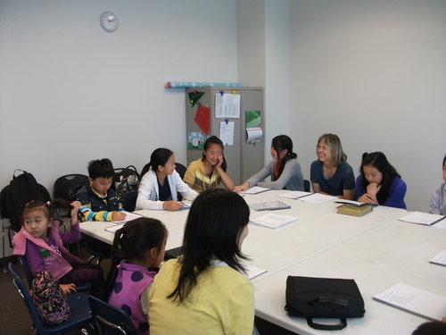 英文兒童聚會。小朋友會自己點選要唱哪一首詩歌。