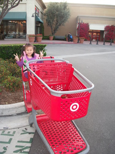 最後到平價連鎖百貨Target購物去,J寶又坐上可載三個小孩的推車。